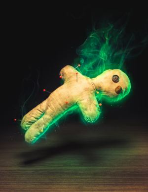 Bones, roots, and nails are often used to make charms, amulets, and voodoo dolls, which are part of the Haitian influence.